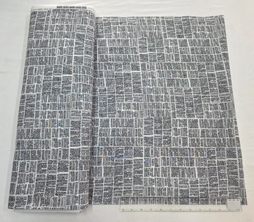 A charming black-and-ivory cotton fabric featuring an all-over scattered newspaper print. The layered typography creates a vintage, editorial look that feels playful yet timeless—perfect for quilting, light apparel, accessories, and home décor accents.