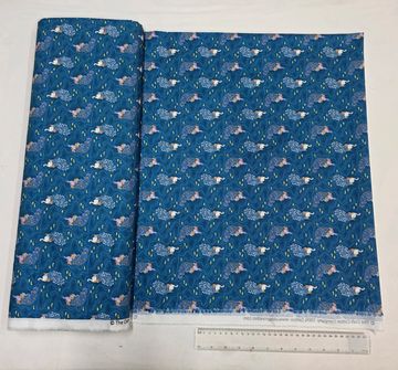 A beautifully detailed cotton fabric featuring elegant geese scattered across a rich teal-blue background with flowing, decorative linework. This graceful print brings a sense of movement and sophistication, making it ideal for quilting, garments, accessories, and statement craft projects.
