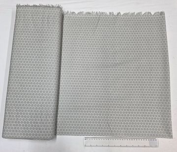A modern, versatile cotton fabric featuring a subtle white hexagon (honeycomb) pattern on a soft grey background. This timeless geometric print works beautifully as a blender or coordinate and is perfect for quilts, home décor, accessories, and everyday sewing projects.