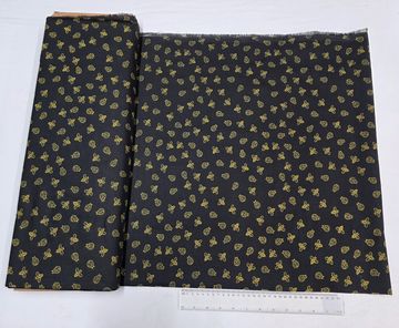A charming cotton fabric featuring golden bees and ladybirds scattered across a deep charcoal-black background. This playful yet sophisticated print adds character without overwhelming, making it ideal for quilting, children’s projects, accessories, and modern home décor.