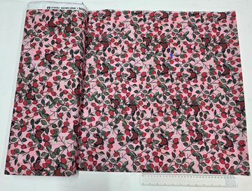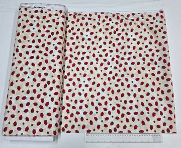 A sweet and timeless cotton fabric featuring a scattered print of ripe red strawberries on a soft cream background. Fresh and cheerful, this versatile design is ideal for quilting, garments, accessories, and charming home décor projects.
