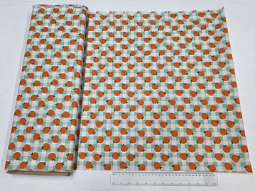A cheerful cotton fabric featuring a playful orange motif set over a soft gingham check in fresh green and white. Bright and nostalgic, this print is perfect for quilting, summer garments, accessories, and happy home décor projects.